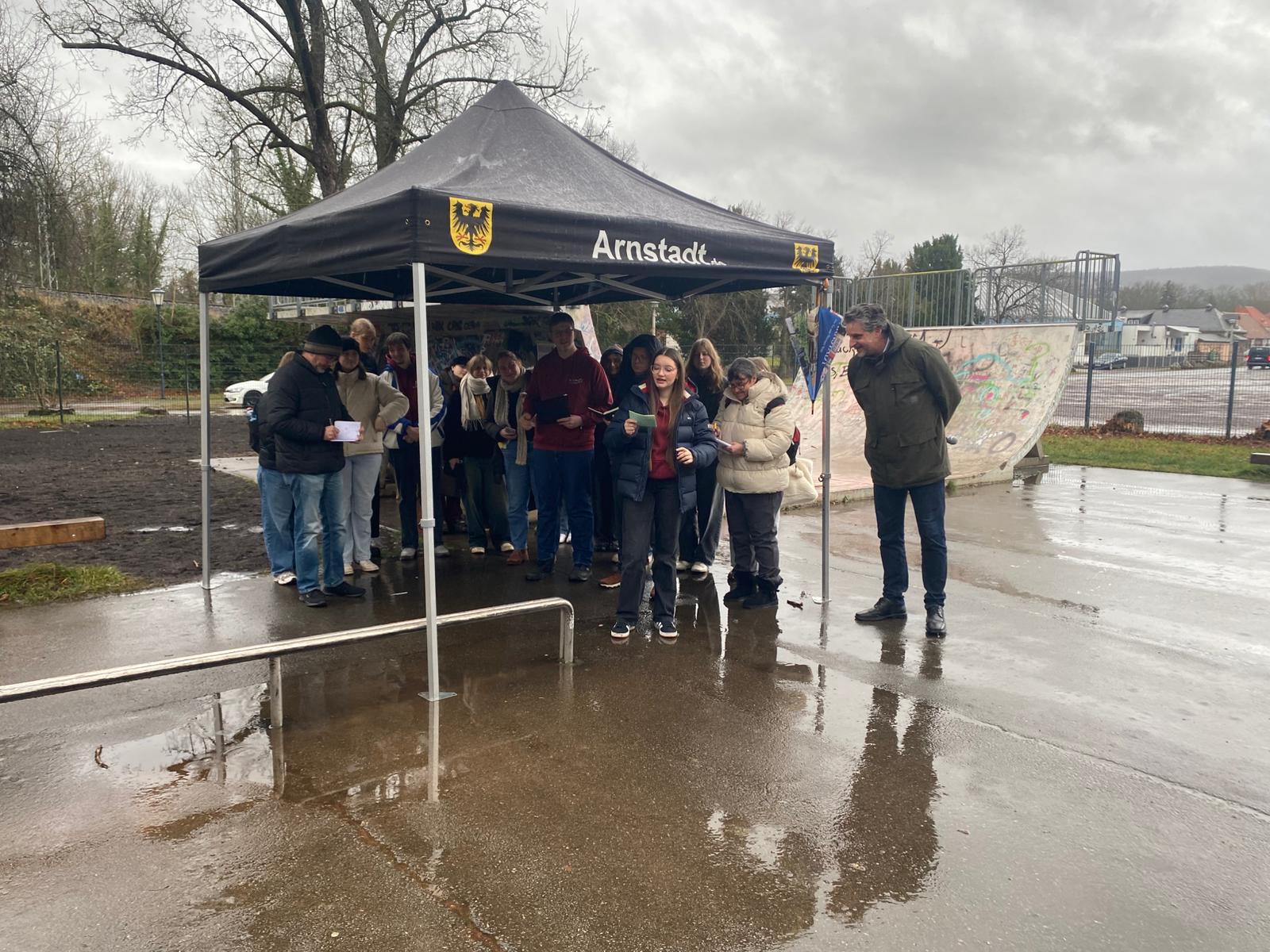 Dank der Beantragung von Fördergeldern konnte der KJB eine beeindruckende Graffiti-Wand in Arnstadt errichten. Mit einem Budget von 9000 Euro finanziert, steht diese kreative Fläche nun am Skaterpark und darf legal besprüht werden. Die Eröffnungsveranstaltung, die es in das MDR Thüringen Journal vom 09.01. geschafft hat, wurde im Rahmen der Staatsprüfung von Frau Sander in enger Zusammenarbeit mit dem KJB und der Klasse 9a des MELISSANTES Gymnasiums geplant.