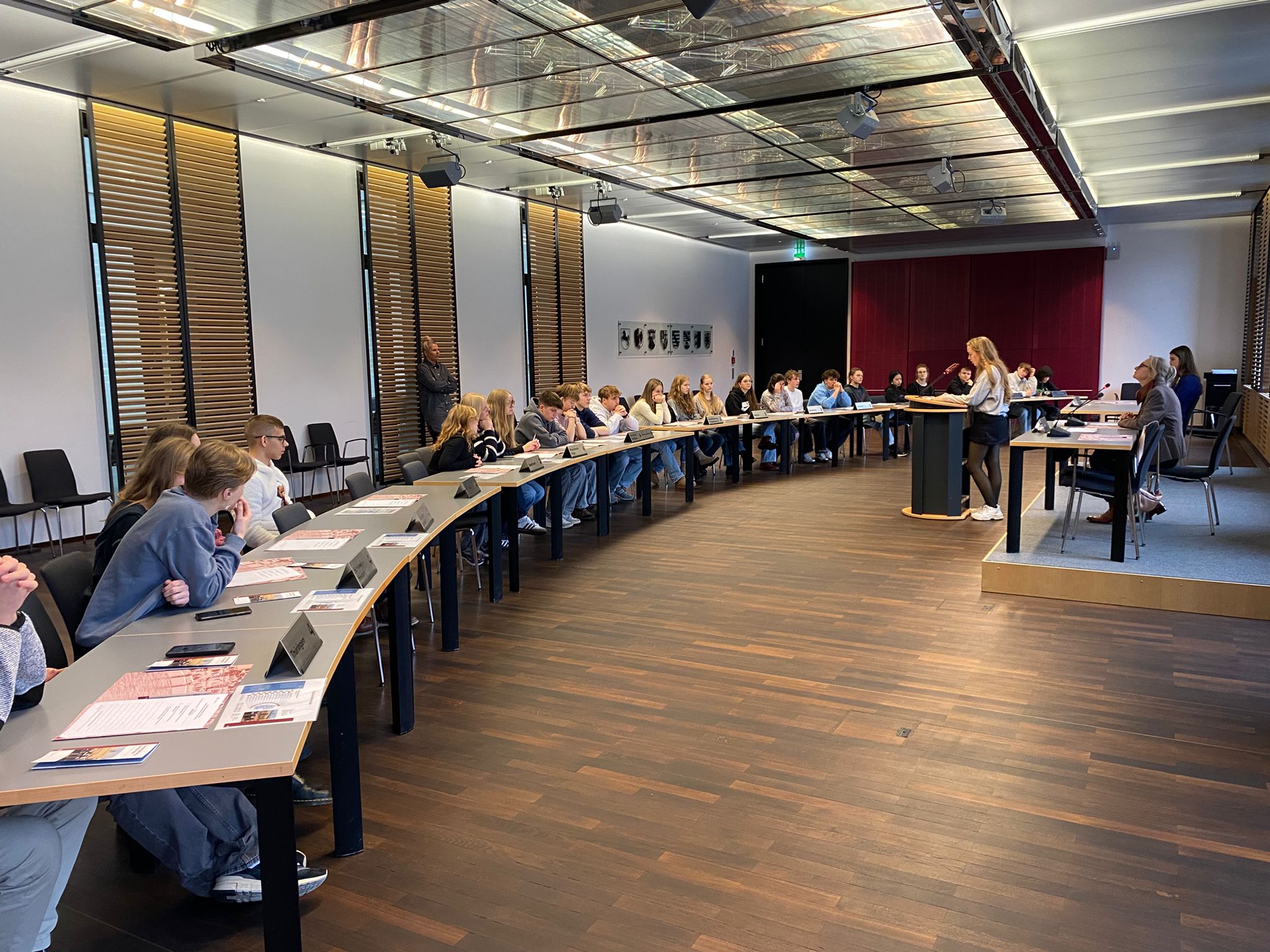 Unsere Sozialkundekurse A25 und A26 erlebten vom 10. bis 11. Januar 2025 eine aufregende und lehrreiche Exkursion in die Hauptstadt Berlin. Nach einer reibungslosen Anreise am 10.01.2025 begann unser Programm um 13 Uhr mit einer spannenden Besichtigung des Bundesrates. Unsere Schüler hatten die einzigartige Gelegenheit, im Rahmen eines Planspiels über einen von ihnen selbst ausgewählten Gesetzesvorschlag abzustimmen. Das Thema lautete, ob soziale Medien, ähnlich wie in Australien, für Jugendliche unter 16 Jahren begrenzt werden sollten. Mit nur einer einzigen Ausnahme - WhatsApp sollte weiterhin für alle Altersgruppen frei nutzbar bleiben - stimmten unsere Schüler dem Gesetzesvorschlag zu.