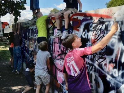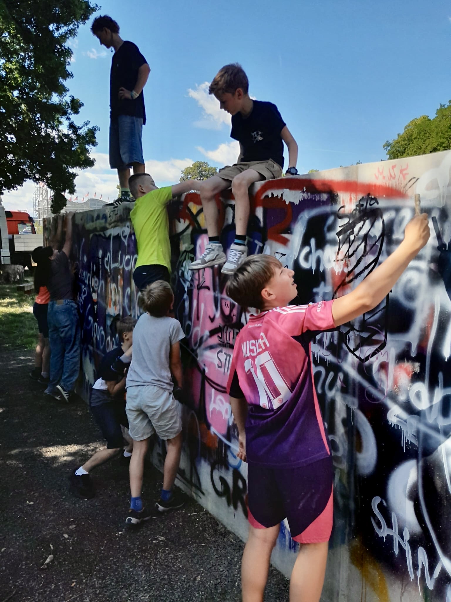 Es ging aber nicht nur um körperliche Gesundheit, sondern auch um mentale Stärke: In einem Projekt wurden Strategien gegen Prüfungsangst und Stress gesammelt und ausprobiert. Wer lieber kreativ arbeiten wollte, konnte unter anderem in der Kreativwerkstatt mit Farben und Formen experimentieren, sich an die Nähmaschine setzen oder sich im Graffiti-Projekt „Spray it“ künstlerisch entfalten. Auch gesellschaftliche Themen fanden Platz – wie etwa Mädchen- und Frauengesundheit oder die Geschichte von Fußballern als Opfer nationalsozialistischer Verfolgung.
