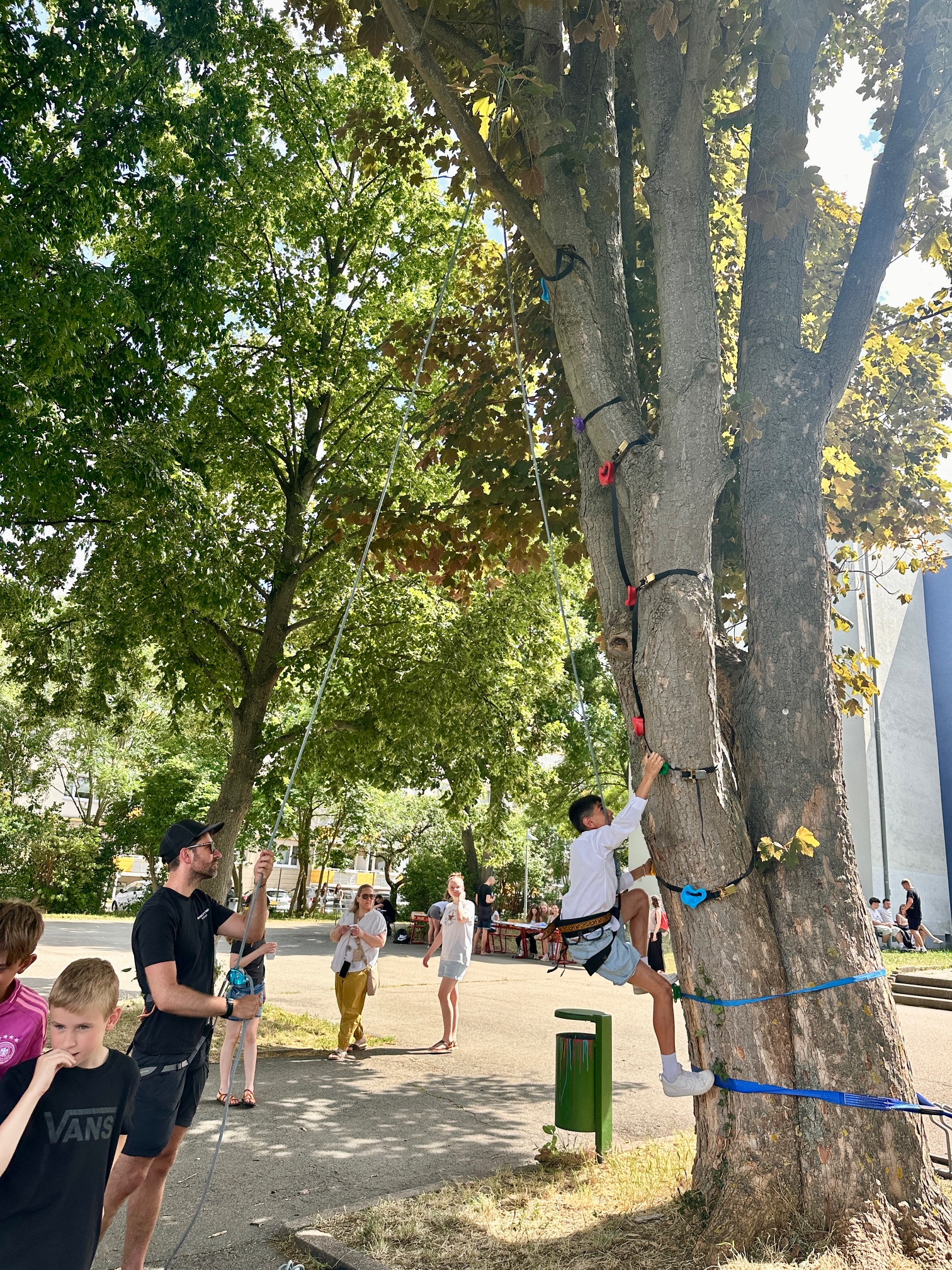 Natürlich kam auch Bewegung nicht zu kurz: In der Turnhalle entstanden beeindruckende Menschenpyramiden, andere Gruppen waren mit Flag-Football, Yoga oder Klettern aktiv. Und wer einfach mal den Kopf freibekommen wollte, konnte beim Zeichnen in der Natur abschalten oder in einem Projekt eigene Naturprodukte herstellen.