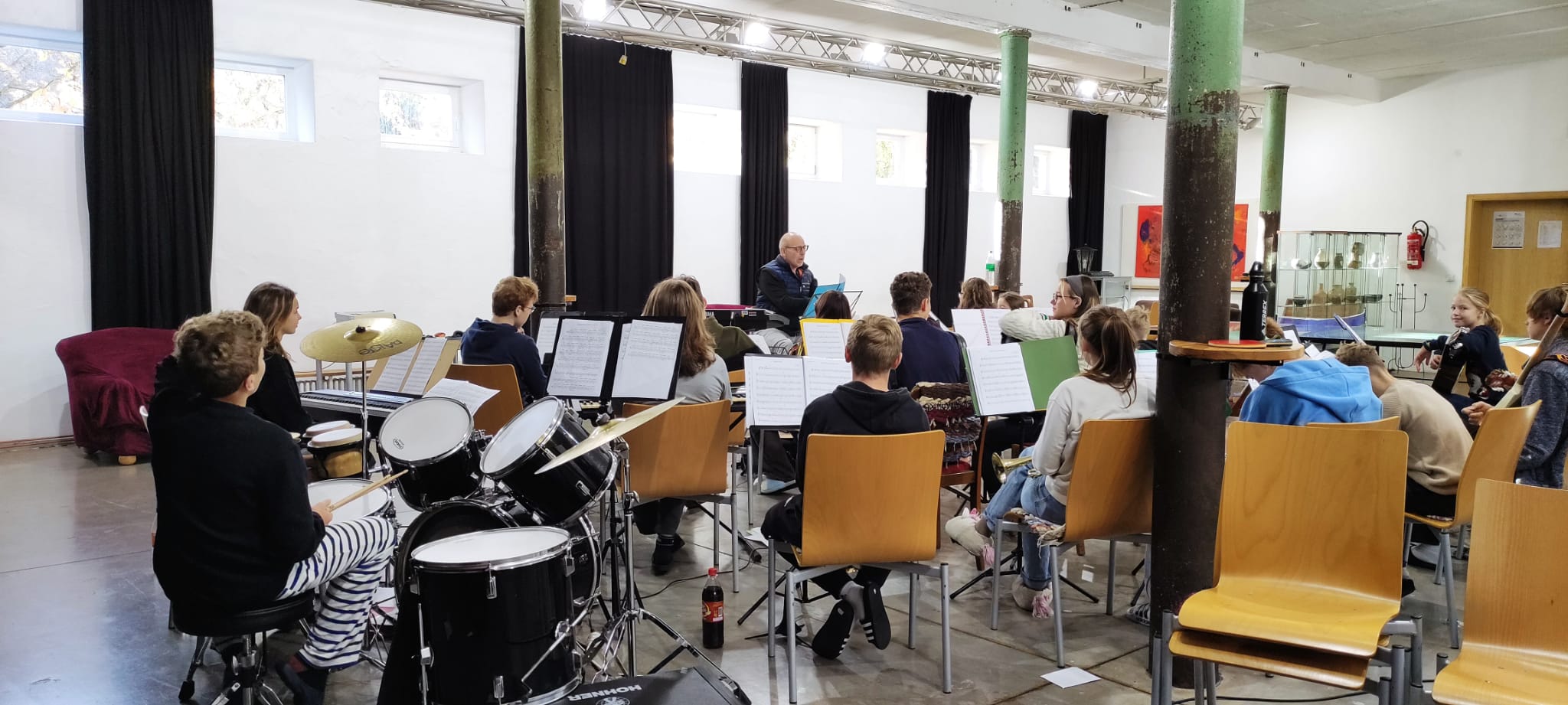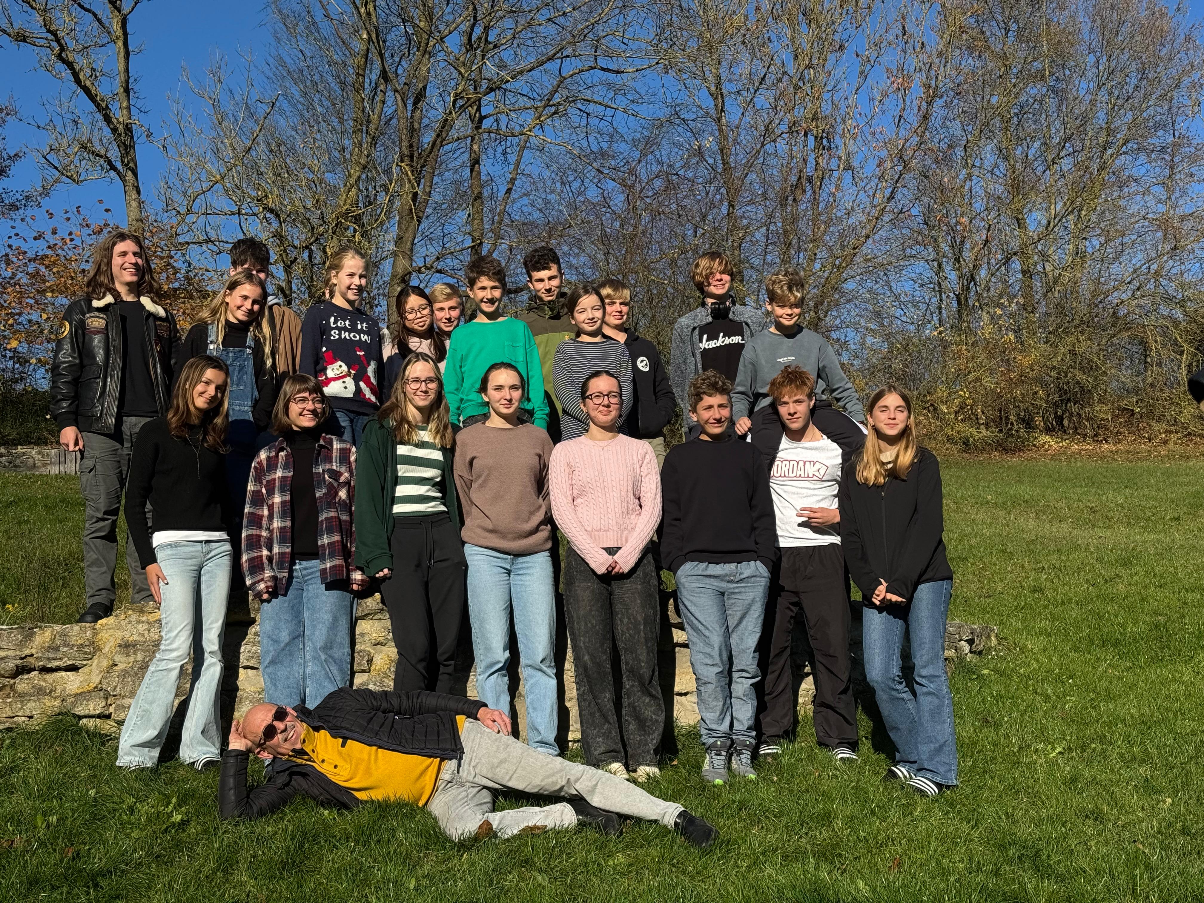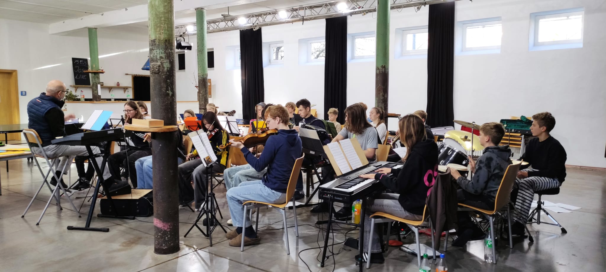 Auch dieses Jahr begaben sich wieder einige Kunstbegeisterte und unser Schulorchester in das gemeinsame Proben- und Kunstlager, mit dem Ziel gemeinsam kreativ zu werden und Musik zu machen. Von vielen lang ersehnt, für andere als eine neue Erfahrung, begann die Reise am vergangenen Montag mit der Busfahrt in das, im beschaulichen Helbe-Dün-Tal gelegene, Friedrichsrode. Am Nachmittag sind dann die Zwölftklässler mit Frau Stumpp noch dazugestoßen. Wo am Montag noch Unsicherheiten gespielt wurden oder die zündende Idee noch nicht gefunden war, entstand bald Sicherheit oder zufriedenstellende Skizzen und Werke. Auf die Frage, wieso er sich das jedes Jahr antue, konnte Herr Benkert sich nach unserer Abschlussprobe selbst zufrieden antworten. In der Zwischenzeit ist jedoch nicht nur musiziert und künstlerisch gearbeitet worden, es wurden auch bei Gemeinschaftsspielen, einem Pizza- und einem Filmabend viele schöne Momente erlebt. Die schöne Herbstlandschaft mit ihren bunten Laubwäldern die uns umgab, inspirierte uns bei bestem Wetter und ermöglichte Entspannung bei ausgedehnten Spaziergängen in den Pausen. Abgeschlossen wurde der Aufenthalt mit einer Vernissage der Bilder unserer jungen Künstler und einem Abschlusskonzert des Schulorchesters. Jetzt bleibt uns nur die wehmütige Verabschiedung von diesem zauberhaften Ort und die Hoffnung auf ein Wiedersehen. Aber auch die Freude an den neu erlernten Fähigkeiten und die frohe Erwartung der Weihnachtskonzerte des Schulorchesters zu denen wir Sie ganz herzlich einladen.