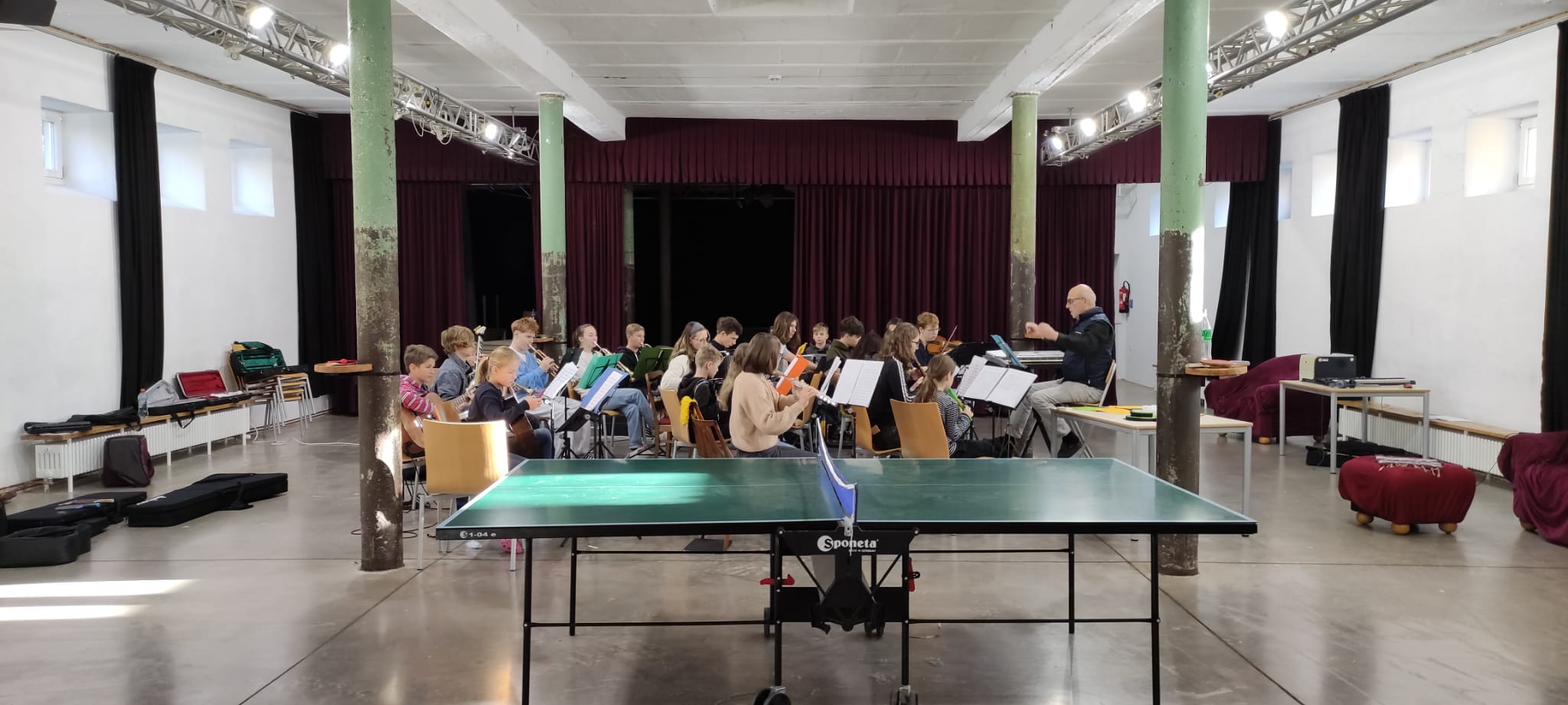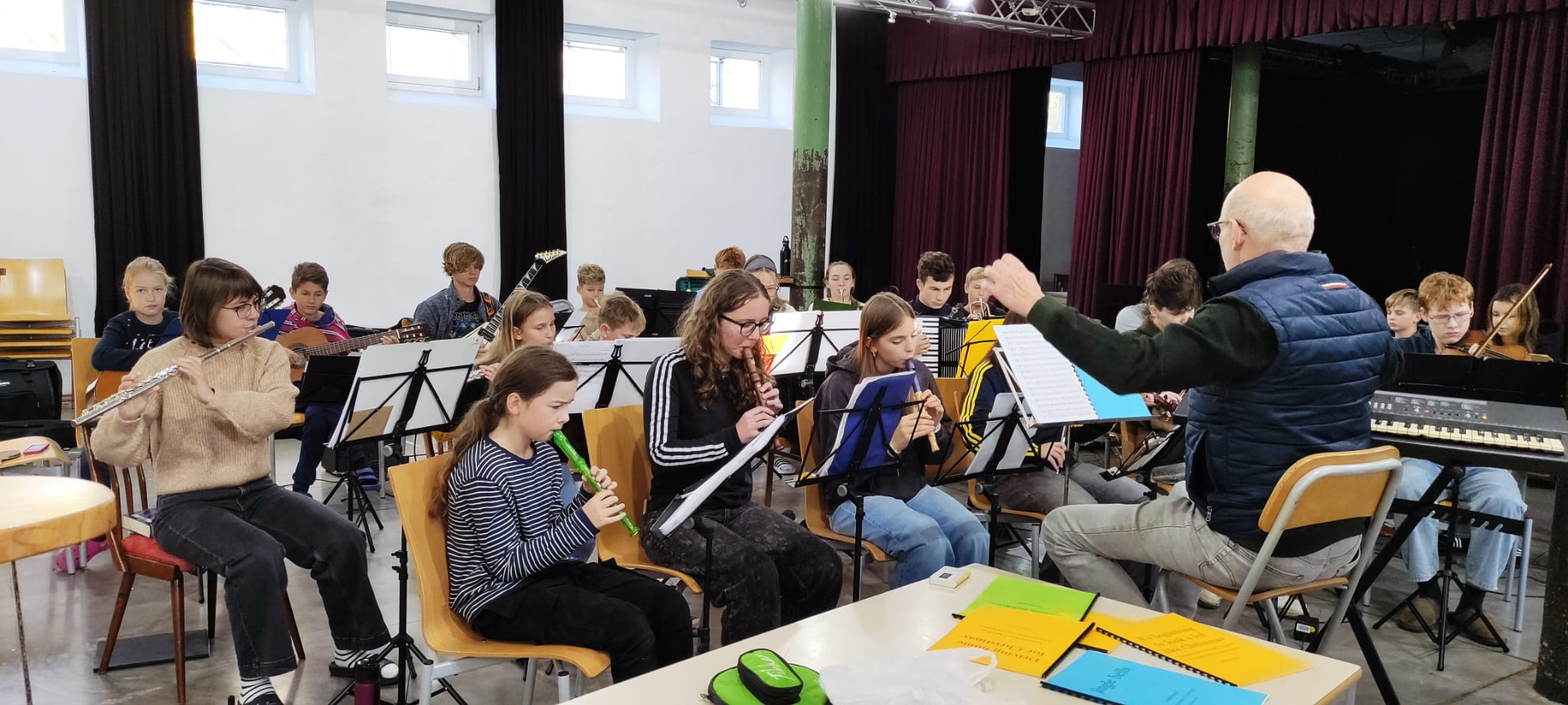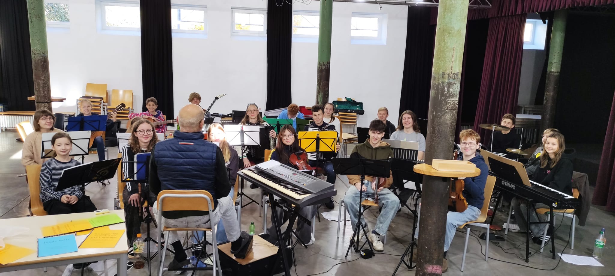 Auch dieses Jahr begaben sich wieder einige Kunstbegeisterte und unser Schulorchester in das gemeinsame Proben- und Kunstlager, mit dem Ziel gemeinsam kreativ zu werden und Musik zu machen. Von vielen lang ersehnt, für andere als eine neue Erfahrung, begann die Reise am vergangenen Montag mit der Busfahrt in das, im beschaulichen Helbe-Dün-Tal gelegene, Friedrichsrode. Am Nachmittag sind dann die Zwölftklässler mit Frau Stumpp noch dazugestoßen. Wo am Montag noch Unsicherheiten gespielt wurden oder die zündende Idee noch nicht gefunden war, entstand bald Sicherheit oder zufriedenstellende Skizzen und Werke. Auf die Frage, wieso er sich das jedes Jahr antue, konnte Herr Benkert sich nach unserer Abschlussprobe selbst zufrieden antworten. In der Zwischenzeit ist jedoch nicht nur musiziert und künstlerisch gearbeitet worden, es wurden auch bei Gemeinschaftsspielen, einem Pizza- und einem Filmabend viele schöne Momente erlebt. Die schöne Herbstlandschaft mit ihren bunten Laubwäldern die uns umgab, inspirierte uns bei bestem Wetter und ermöglichte Entspannung bei ausgedehnten Spaziergängen in den Pausen. Abgeschlossen wurde der Aufenthalt mit einer Vernissage der Bilder unserer jungen Künstler und einem Abschlusskonzert des Schulorchesters. Jetzt bleibt uns nur die wehmütige Verabschiedung von diesem zauberhaften Ort und die Hoffnung auf ein Wiedersehen. Aber auch die Freude an den neu erlernten Fähigkeiten und die frohe Erwartung der Weihnachtskonzerte des Schulorchesters zu denen wir Sie ganz herzlich einladen.