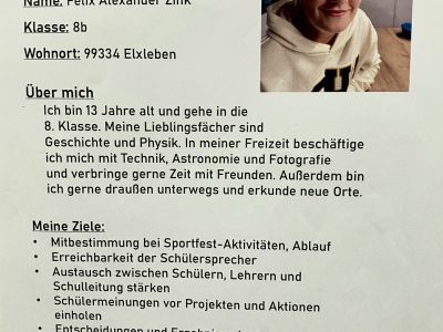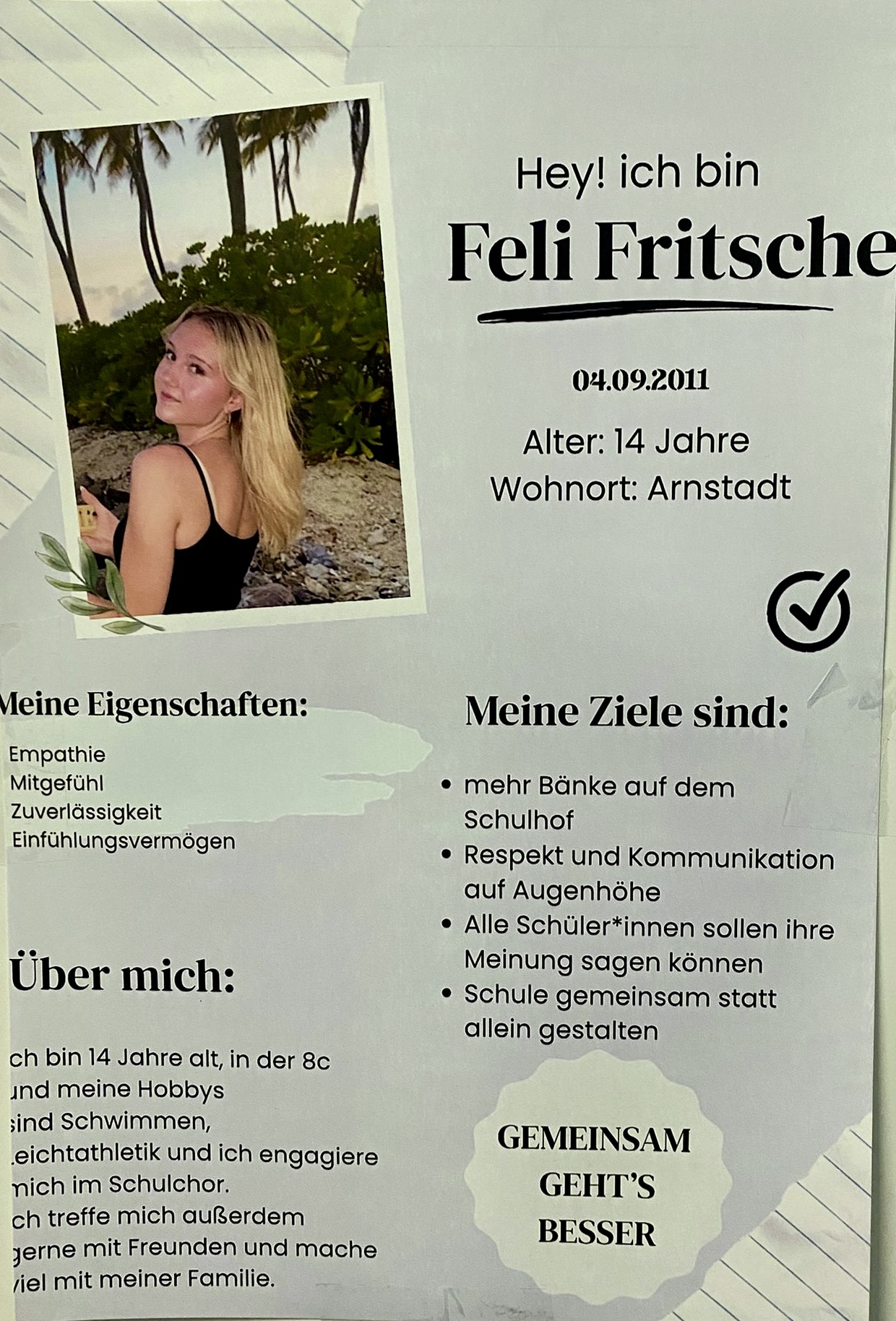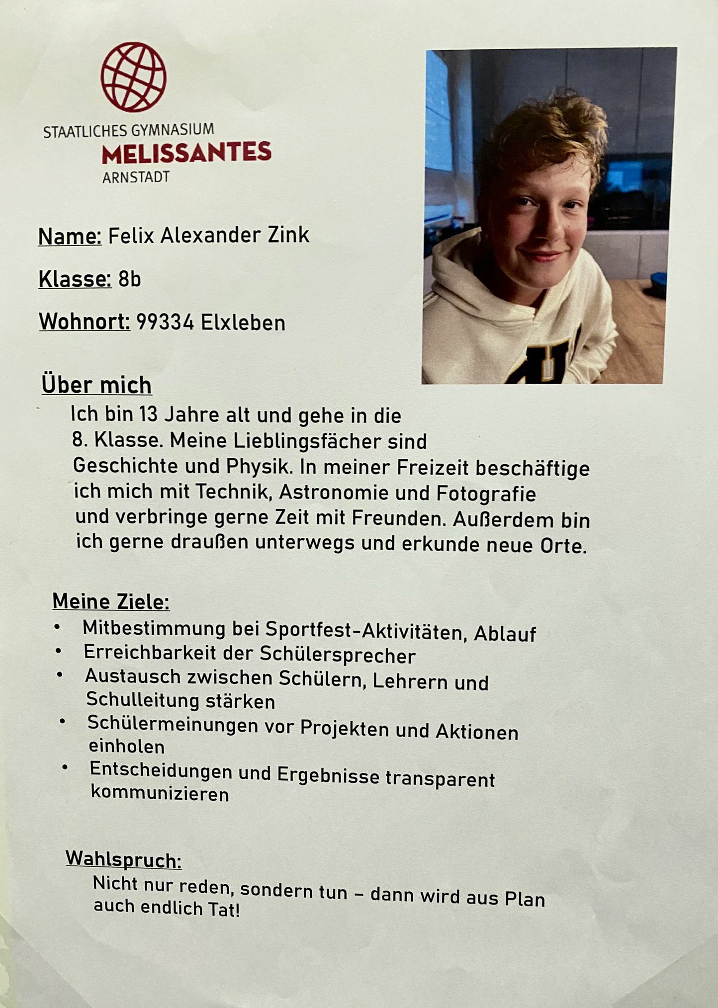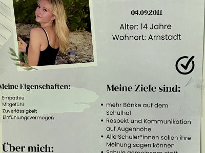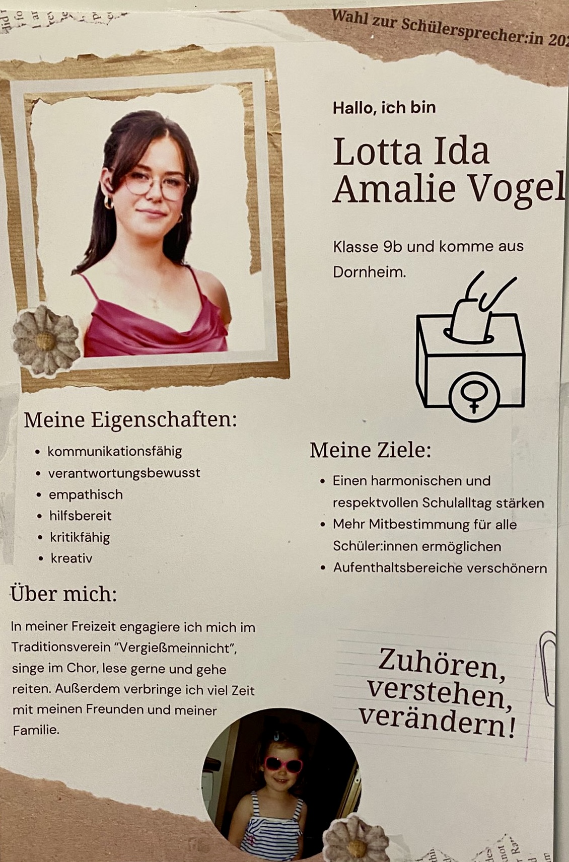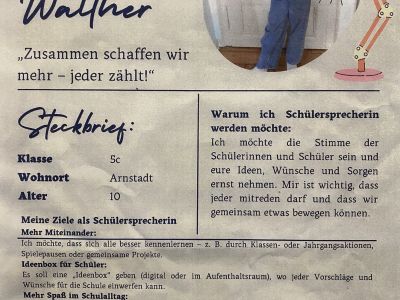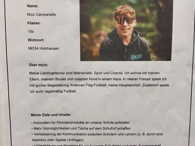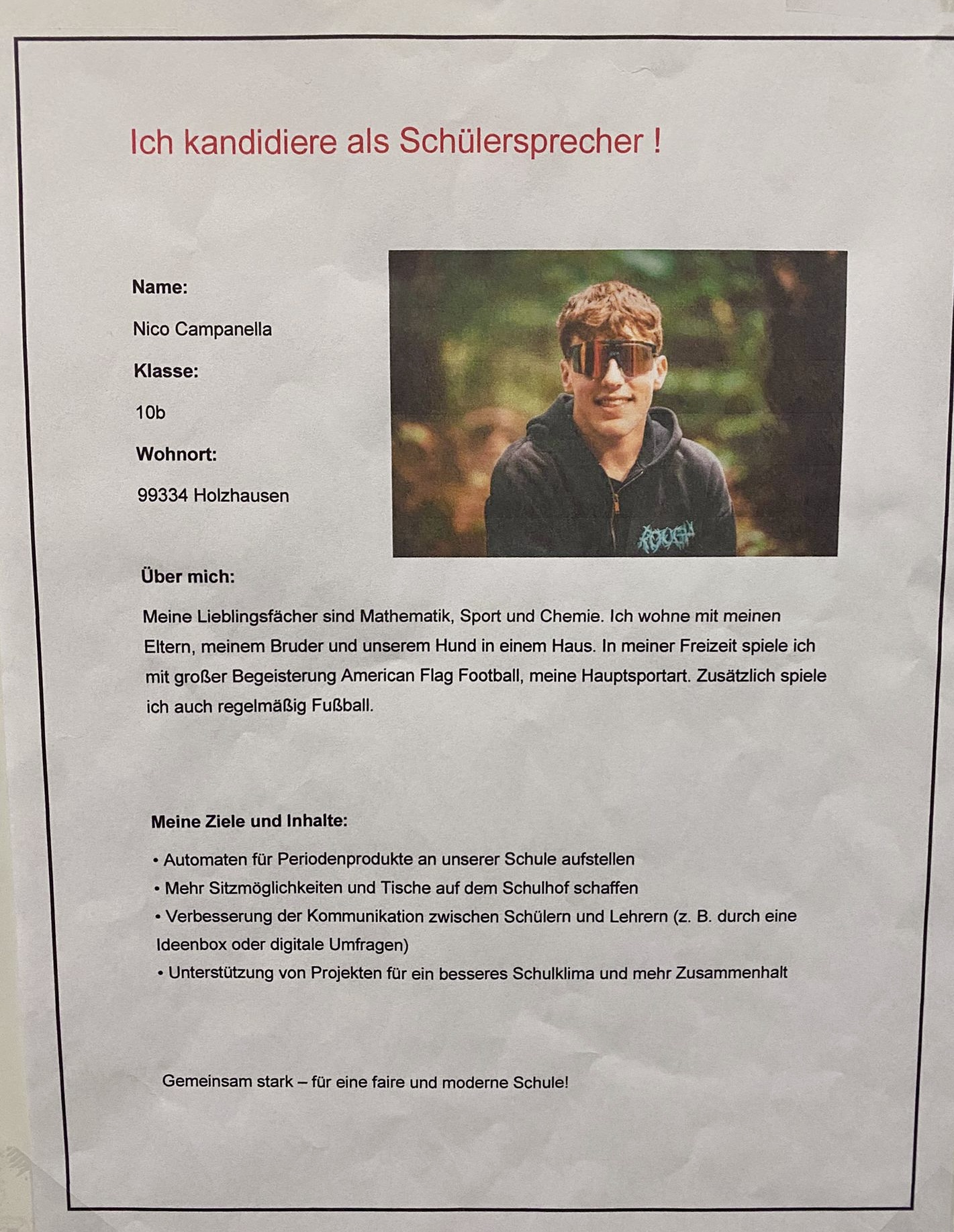 Wir suchen für unser Gymnasium neue Schülersprecher*innen und es haben sich fünf Schüler*innen beworben: