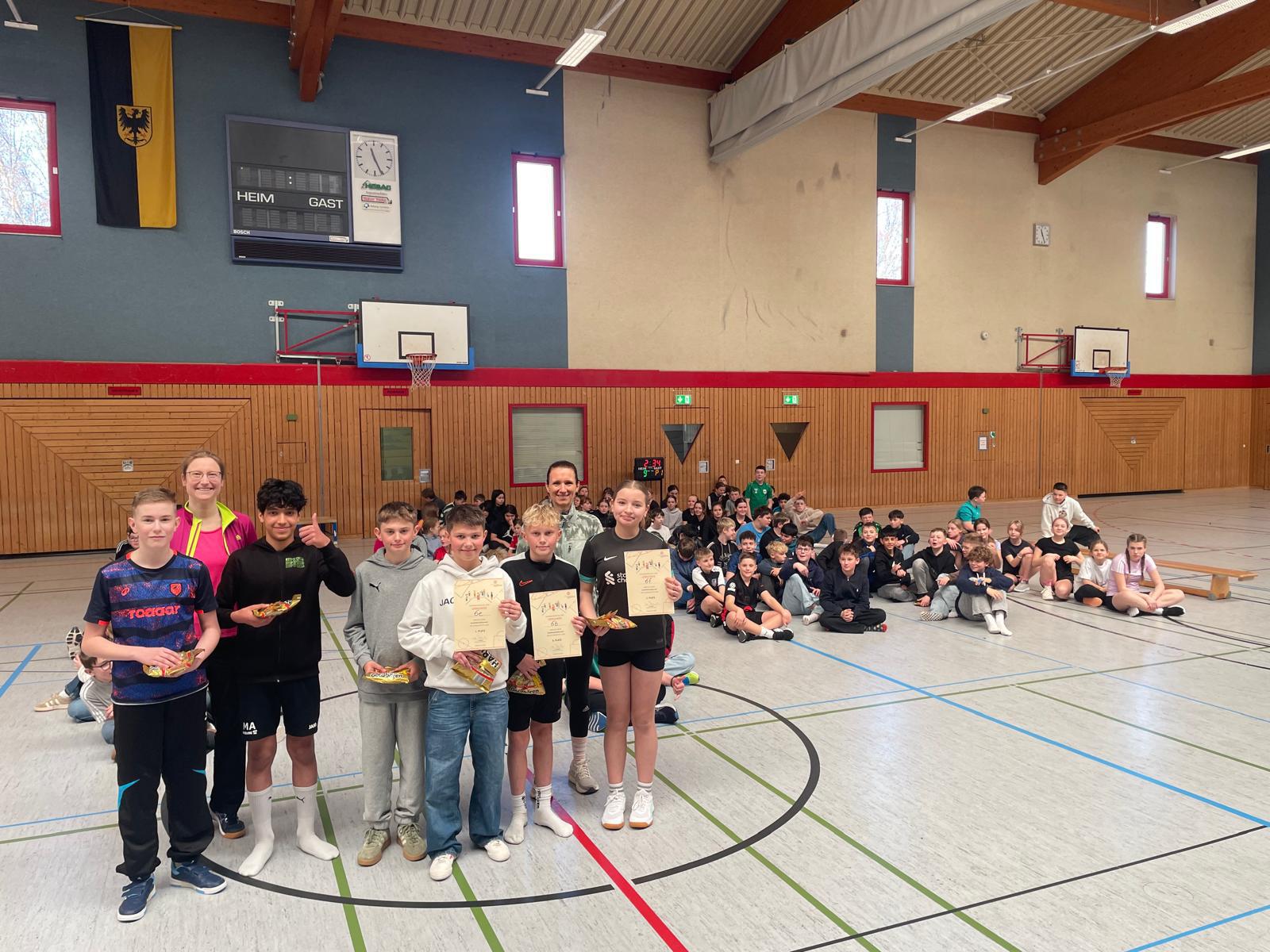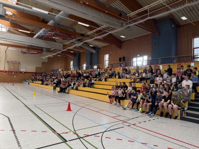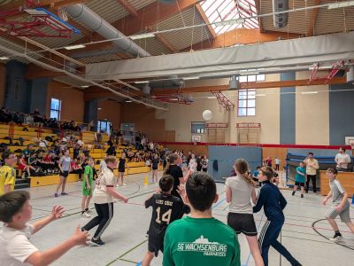 Beim diesjährigen Zweifelderballturnier der 5. und 6. Klassen unseres Gymnasiums ging es in der Hubertus-Triebel-Halle in Arnstadt sportlich und spannend zu. Mit viel Einsatz und Teamgeist lieferten sich die Klassen packende Duelle und sorgten für beste Stimmung auf und neben dem Spielfeld.